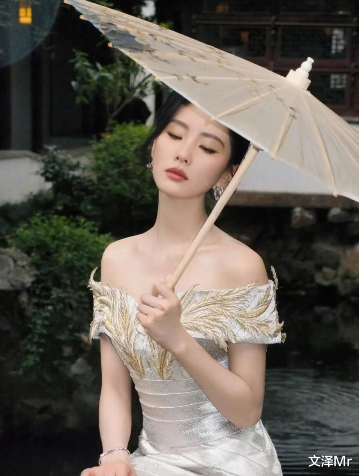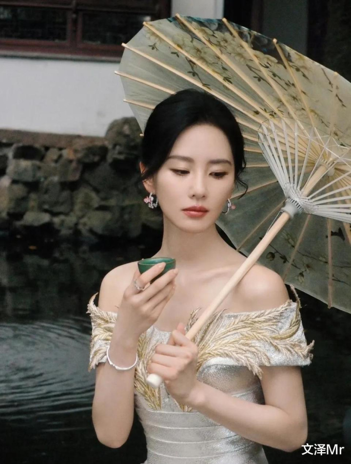 银色礼服的精致与油纸伞的古典质朴交融,她的神态安然,仿佛在时尚与古典的边界找寻内心宁静。这张照片让我们看到,时尚不只是外在的华丽,更是一种能传递情绪、营造意境的载体。刘诗诗凭借自身对东方美学的理解,把礼服穿搭与古典情境结合,定格出独特的时尚禅意,让时尚有了更深层次的文化内涵与情感温度。