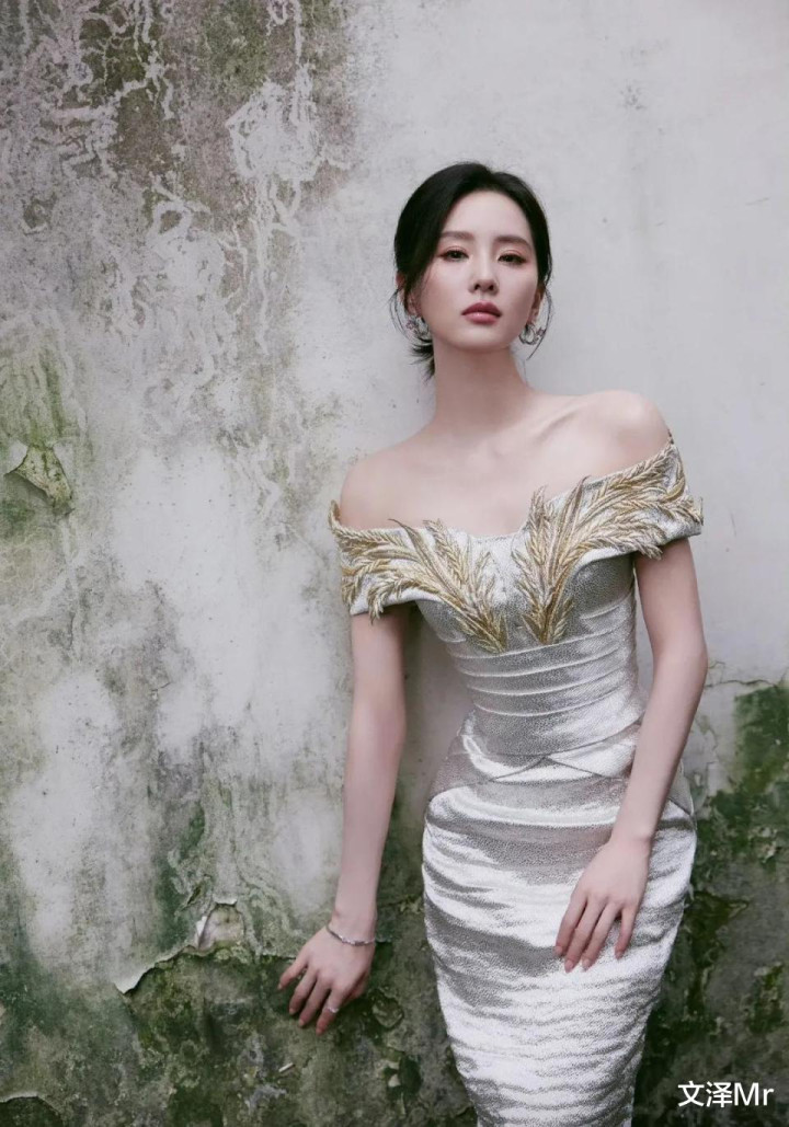 墙面上岁月留下的痕迹,与刘诗诗身上闪耀的银色礼服形成强烈对比。礼服紧致贴合身材,凸显出她绝佳的身材比例,一字肩的金色羽毛装饰在这略显沧桑的背景里,更具时尚张力。她的姿态从容,仿佛在诉说时尚从不被环境定义,即便身处斑驳老旧之中,凭借自身气质与穿搭,依旧能成为时尚的发光体,让我们看到古典韵味与现代时尚碰撞出的奇妙火花。